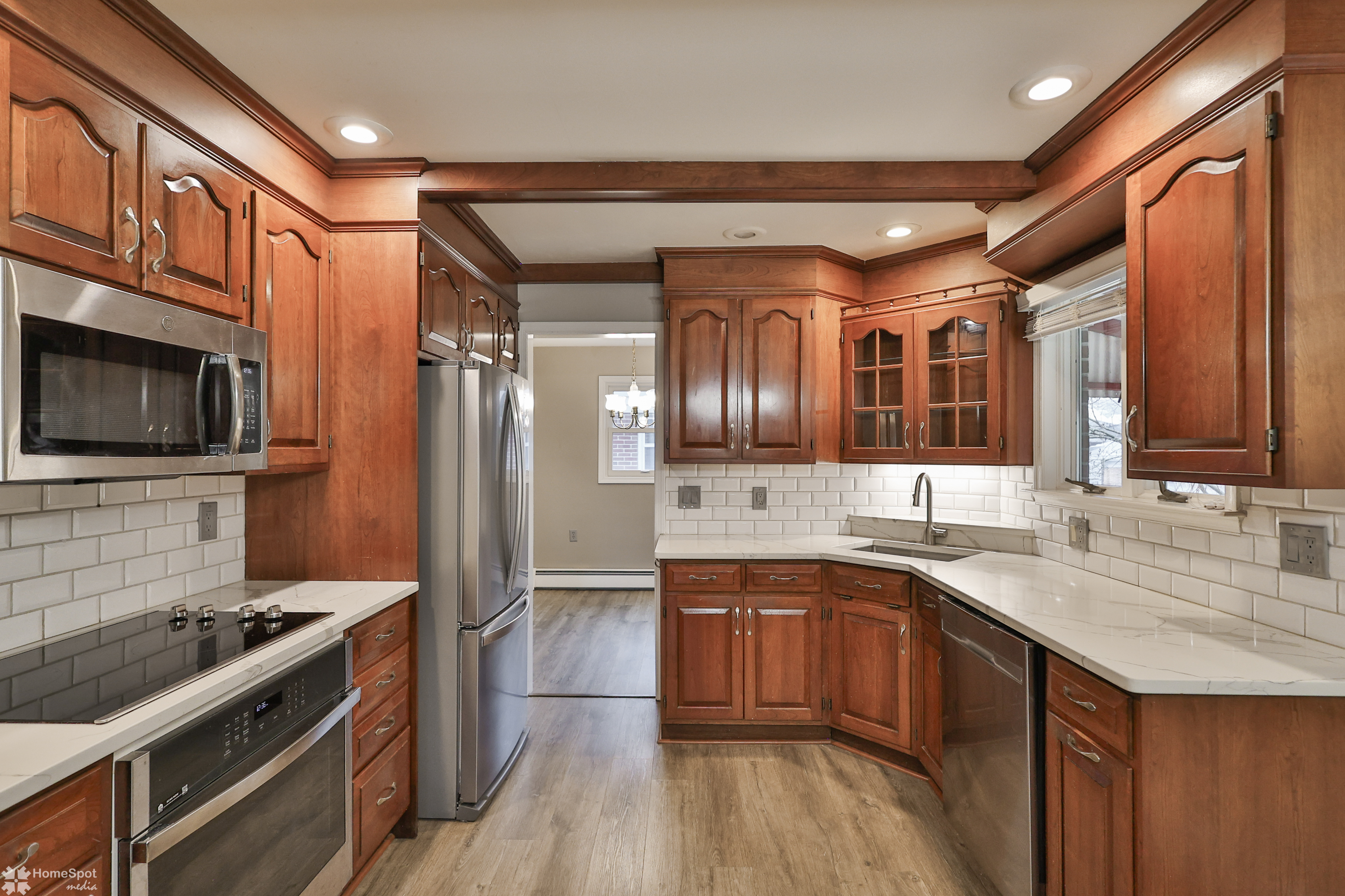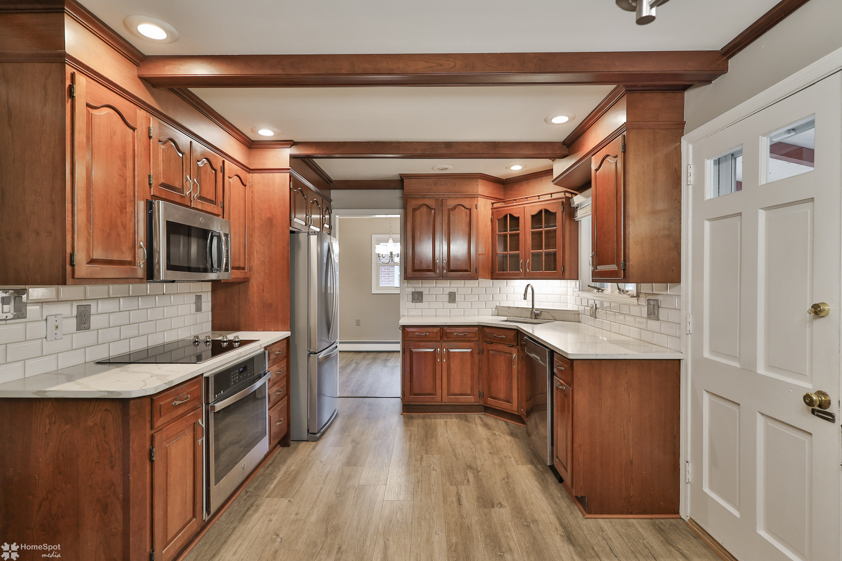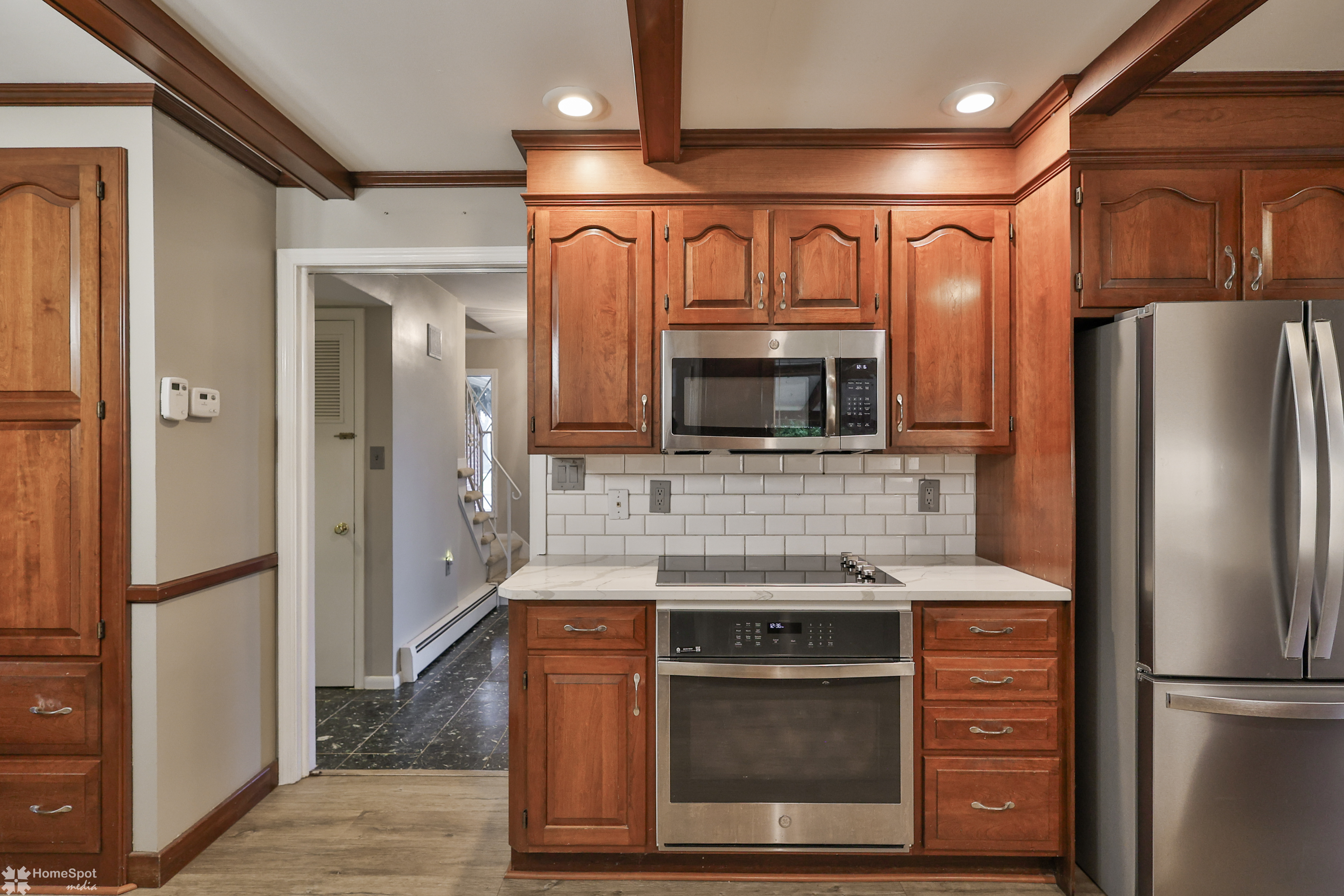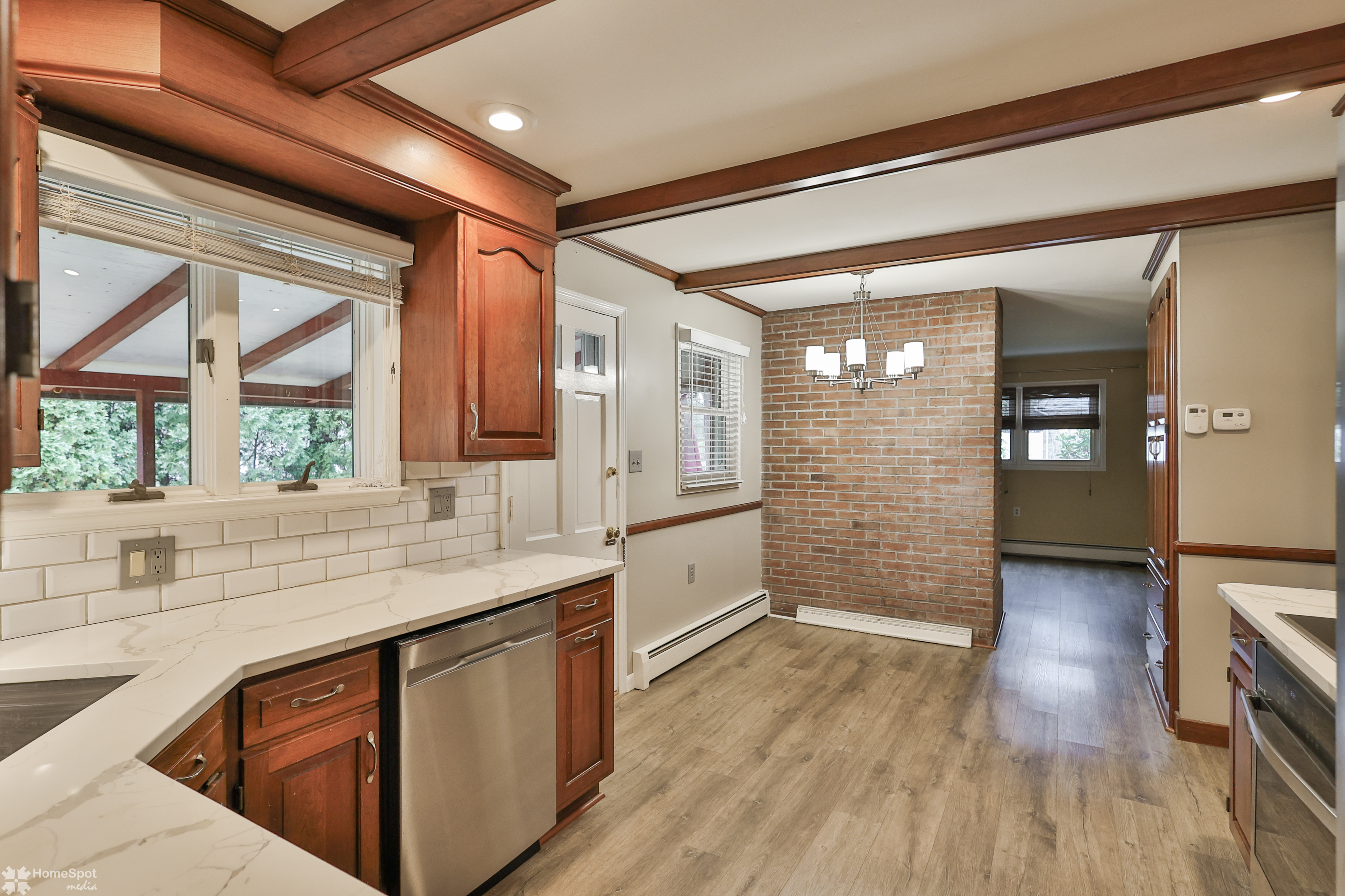 West End 2-story Colonial offering 1,954 sq. ft. with 4 BR's, 2.5 baths plus an additional 313 sq. ft. of finished living space in the lower level. The 1st floor features a spacious living room with an oversized window, formal dining room, and an updated kitchen showcasing cherry cabinetry, luxury vinyl flooring, quartz countertops, tile backsplash, beamed ceiling, recessed lighting, separate eating area and an accent brick wall. The kitchen opens to an 18' x 8' covered patio overlooking the backyard. Off the kitchen is a cozy family room with a brick wood-burning fireplace, a full bath, and access to the 1-car attached garage. The 2nd floor offers a primary bedroom with ensuite half bath, along with 3 additional bedrooms and a full hall bath. The finished lower-level recreation room adds 313 sq. ft. of living space and features new carpet (2025), plus a separate storage room with shelving. Additional highlights include a tile entry foyer and replacement windows throughout. Easy access to Rt 22, pubic transportation and minutes to the Farmers Market and Lehigh Valley Mall. Move-in ready single-detached home in a desirable West End location — warm, inviting, and ready to welcome its next owner.